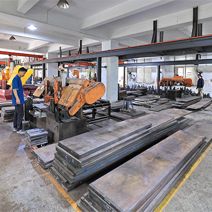 公司擁有數臺大型立式帶鋸,以及鋼板精加工機械,主要有大型水磨床、大型龍門銑床、精銑機床等。為滿足客戶生產急需模具材料要求,公司的加工部與專業熱處理廠家服務配套,能從鋼材胚料,粗加工到熱處理一步到位,增加效率縮短生產周期。